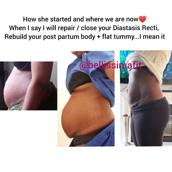 But, now that it’s separated from pregnancy, they can no longer give that tight support, so your abs feels squishy, softer and looks bigger.